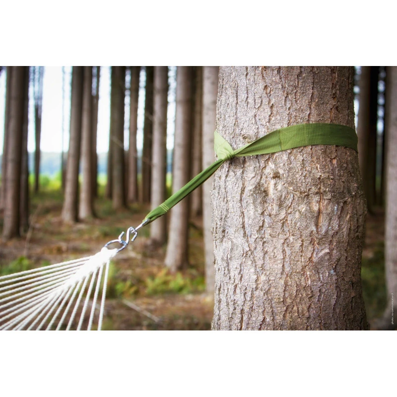 Parfait pour fixer son hamac son souci, rapidement et avec fiabilité CAO OUTDOOR propose ce jeu de deux sangles textiles permettant en faisant le tour du tronc de suspendre son hamac. Pensé pour ne pas abîmer les arbres, les sangles sont larges et n’abîment pas l’écorce de l’arbre.